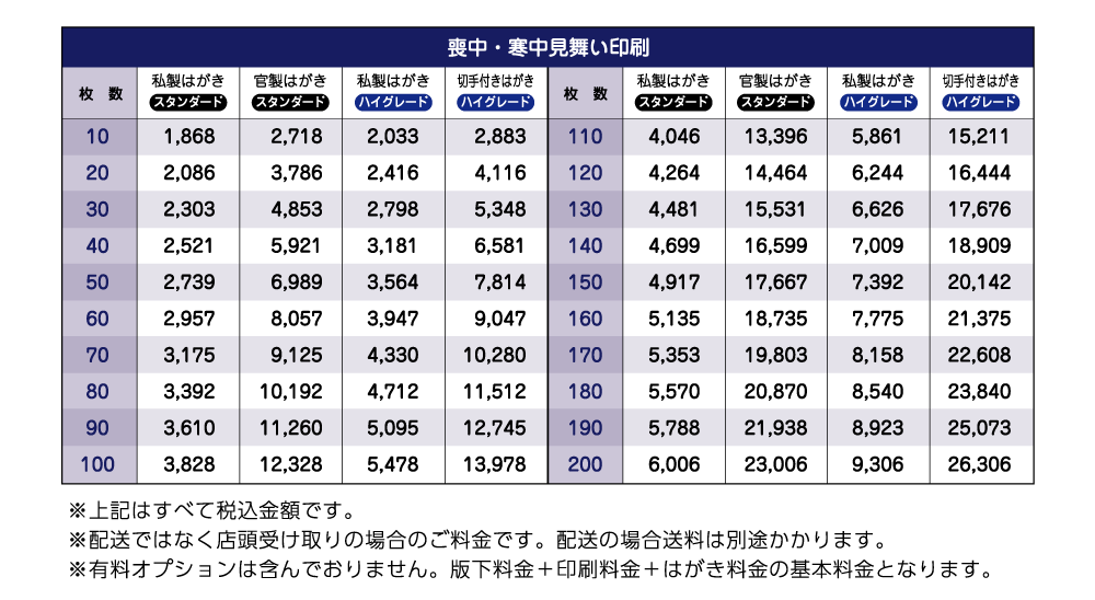 ※ はがき持込の場合は、手数料として+¥6 (税込¥7)/1枚となります。